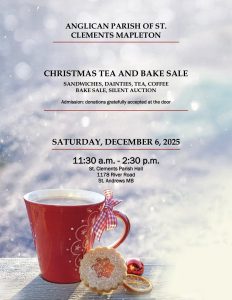 Welcome to St. Clements Anglican Church! We are a warm and welcoming Parish that has served the Mapleton, St. Andrews, and Selkirk area since 1861. The Church abounds with history, and many stories and archives are available. Please take a moment to explore our website, and read about some of the events that are going on, all in the love of God. You would be most welcome to join us for our Sunday morning Service! Enjoy, and God Bless.